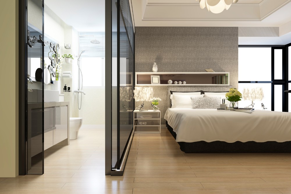 Sypialnia z przeszkloną łazienką – jak oddzielić strefy?